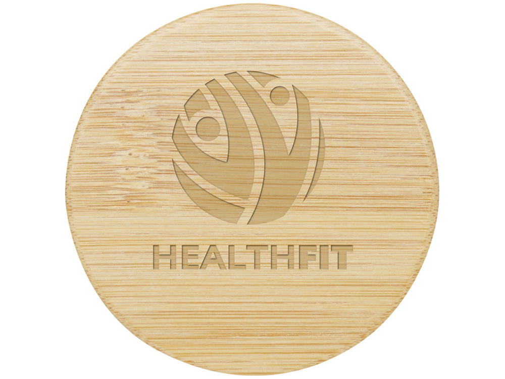 Круглое зеркало из бамбука в хлопковом мешочке.