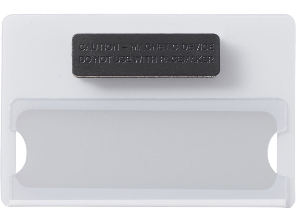 Прочный магнитный бейдж, изготовленный из пластика. Магнитное крепление позволяет быстро прикрепить и снять бейдж без лишних усилий и проколов на ткани.