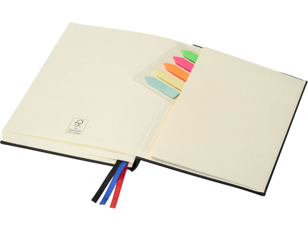 Блокнот Alder формата A5 изготовлен из переработанного пластика, имитирующего кожу, и имеет 192 листа из кремовой бумаги плотностью 80 г/м², оформленные в виде планировщика, идеально подходящего для ведения дневника и поддержания порядка в течение всего года. Имеет две эластичные резинки, три ленточные закладки (черная, красная и синяя), 200 разноцветных липких заметок (по 40 каждого цвета) и удобный бумажный кармашек для отдельных заметок. На задней обложке тиснением нанесен логотип JournalBooks, упакован в картонный слив-бокс белого цвета.