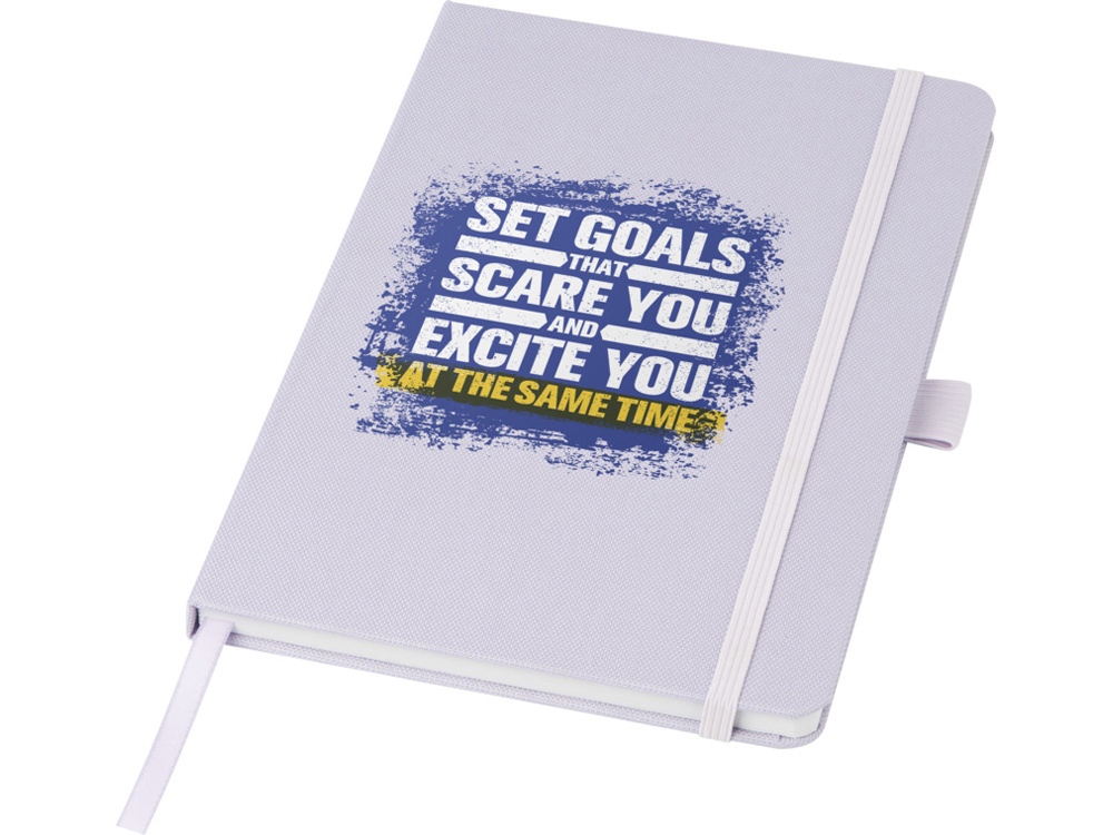 Блокнот формата А5 с обложкой из переработанного ПЭТ. Содержит 80 листов в линию плотностью 70 г/м², изготовленных из переработанной бумаги, с петлей для ручки и лентой-закладкой. Может быть дополнен шариковой ручкой Honua 107757 из переработанного ПЭТ. Переработанный PET пластик. FSC Recycled 100% P7 CU-COC-877277.