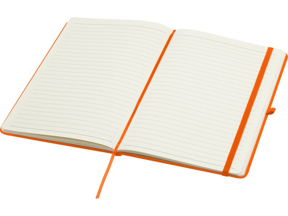 Блокнот Spectrum Plus формата А5 в твердой обложке с закругленными углами — это не только необходимая вещь в офисе, но и прекрасная возможность для продвижения вашего бренда. Картонный блокнот имеет мягкую на ощупь обложку и 80 линованных листов кремового цвета плотностью 70 г/м², идеально подходит для записи быстрых идей или длинных заметок. Блокнот оснащен петлей для ручки, эластичной застежкой, ленточкой-закладкой и карманом-гармошкой.