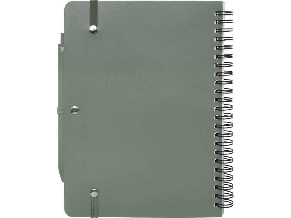Блокнот Thalaasa формата A5 в твердой обложке изготовлен из переработанного океанического пластика и содержит 80 линованных листов кремовой бумаги плотностью 70 г/м². Блокнот имеет закругленные углы, эластичную застежку и петлю для ручки. Шариковая ручка с черными чернилами также изготовлена из переработанного океанического пластика. Длина непрерывной линии: 1000 метров. Размер пера: 1,0 мм.