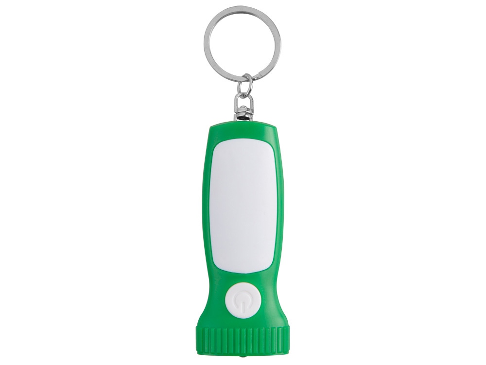 Яркий брелок со встроенным фонариком. Плоская форма и большая ручка с белой вставкой делает брелок удобным для нанесения логотипа.