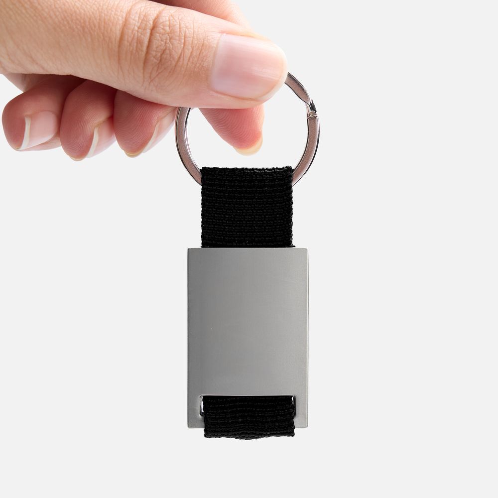 Брелок Inlet с тканевой вставкой, черный купить оптом и в розницу с нанесением логотипа в Волгограде
