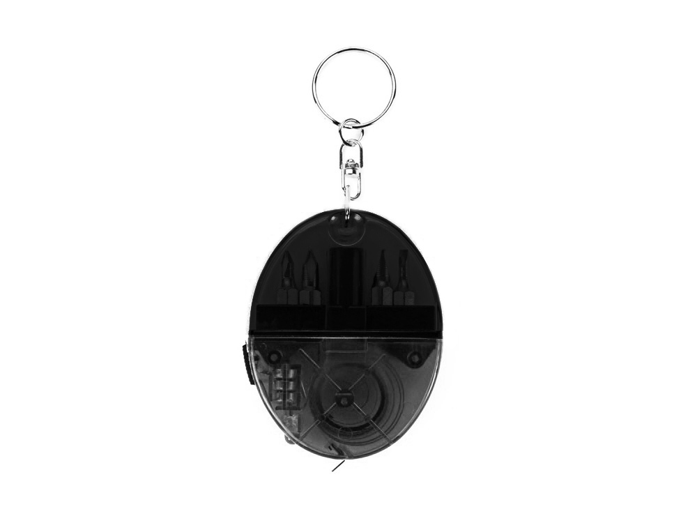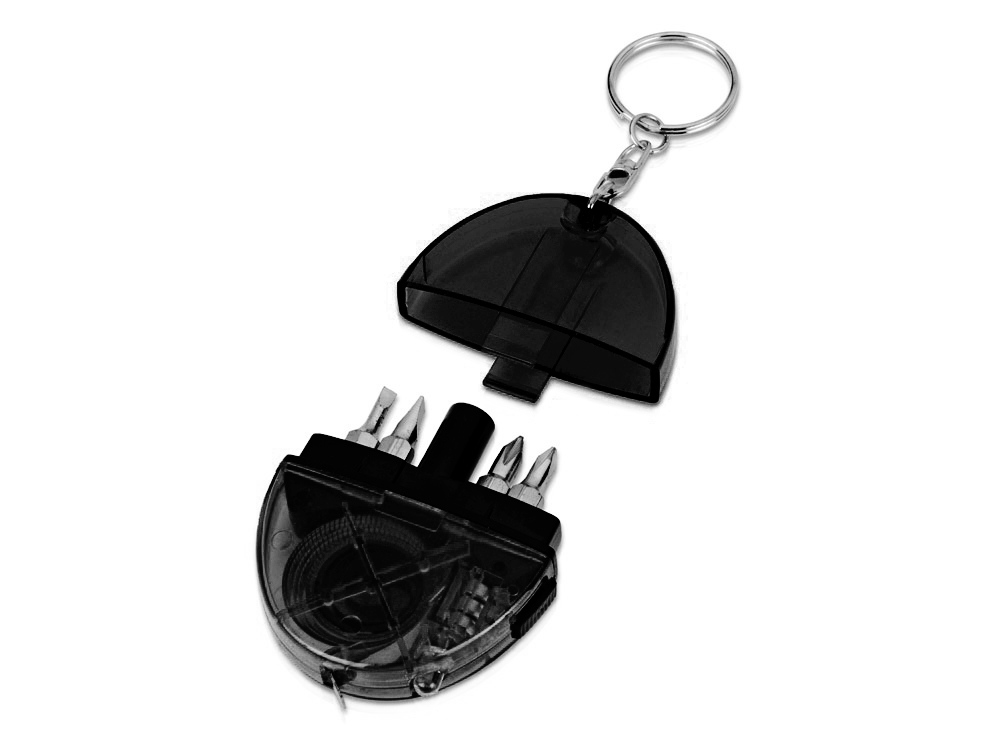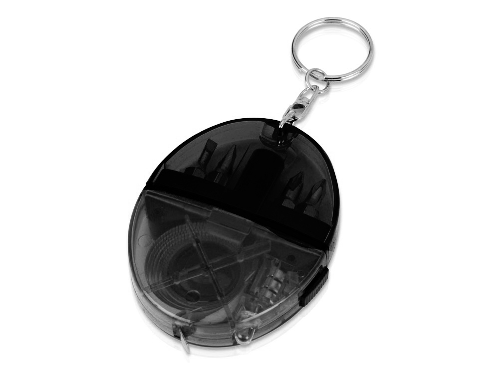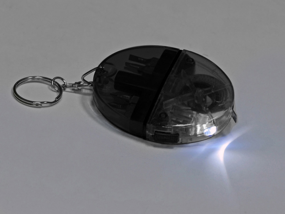 Оригинальный и многофункциональный брелок обладает ярким внешним видом, за которым скрывается весьма полезное содержание. Внутри брелока встроена рулетка, набор отверток и фонарик.