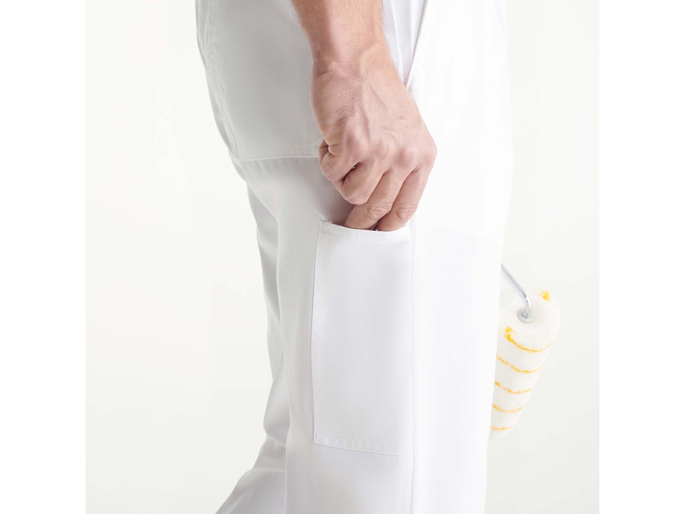 Брюки из прочной ткани. 1. Регулируемый эластичный пояс сзади. 2. Два кармана спереди. 3. Один боковой карман с клапаном на липучке. 4. Один функциональный карман сзади. 5. Боковой карман: узкий и без клапана.