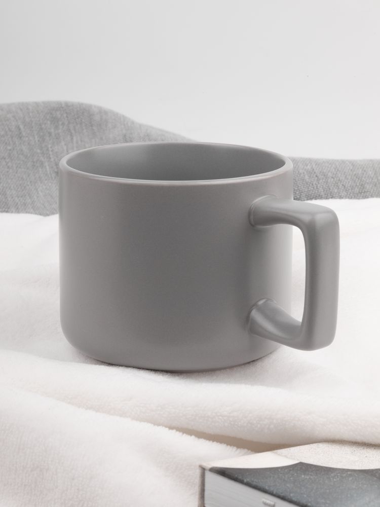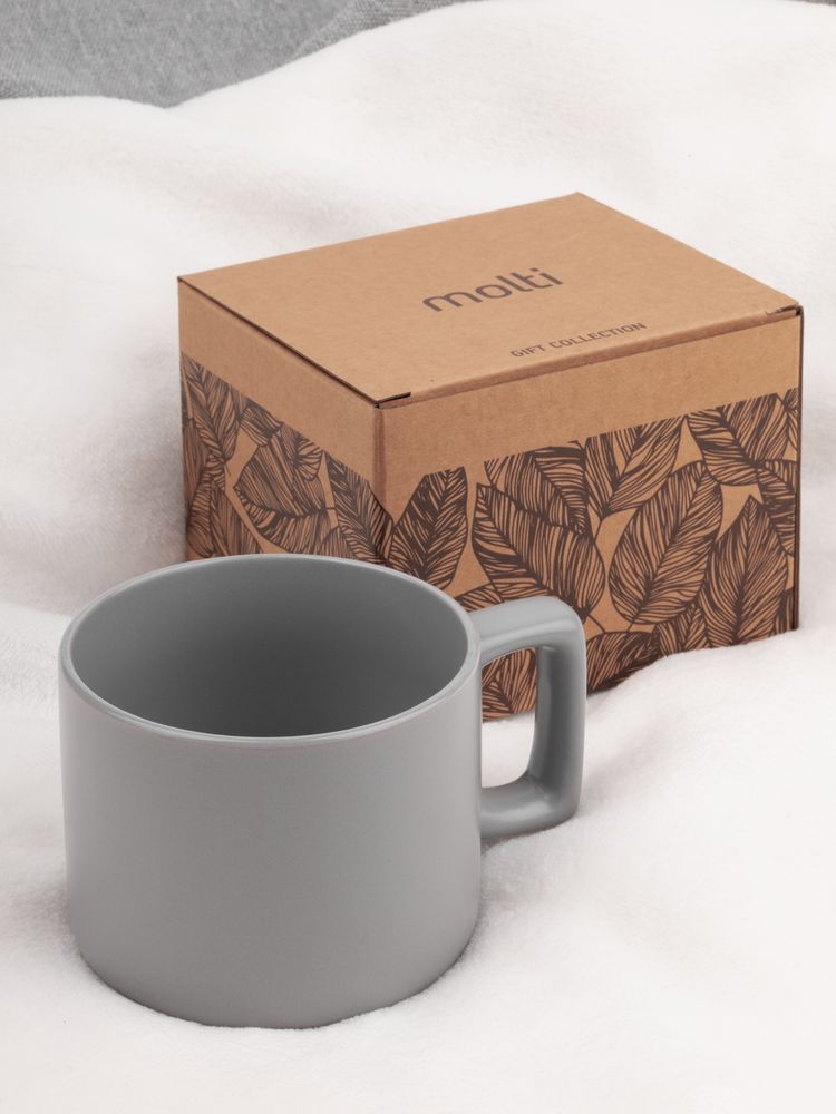 Чашка Jumbo в коробке матовая, светло-серая купить оптом и в розницу с нанесением логотипа в Волгограде