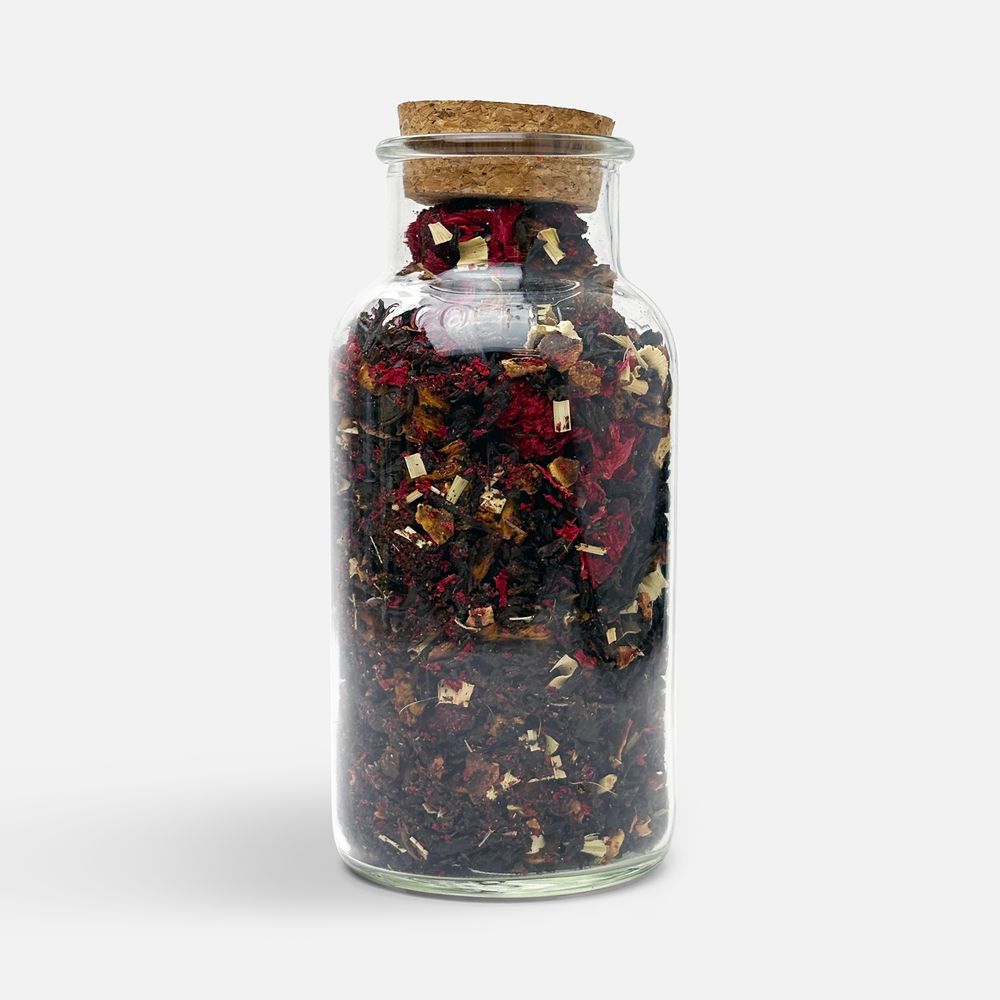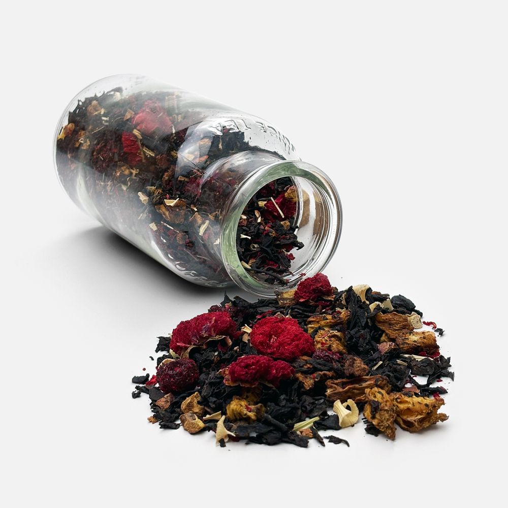 Чай «Сокочай», черный с соком ананаса с вишней, цветками и коркой граната и лемонграссом