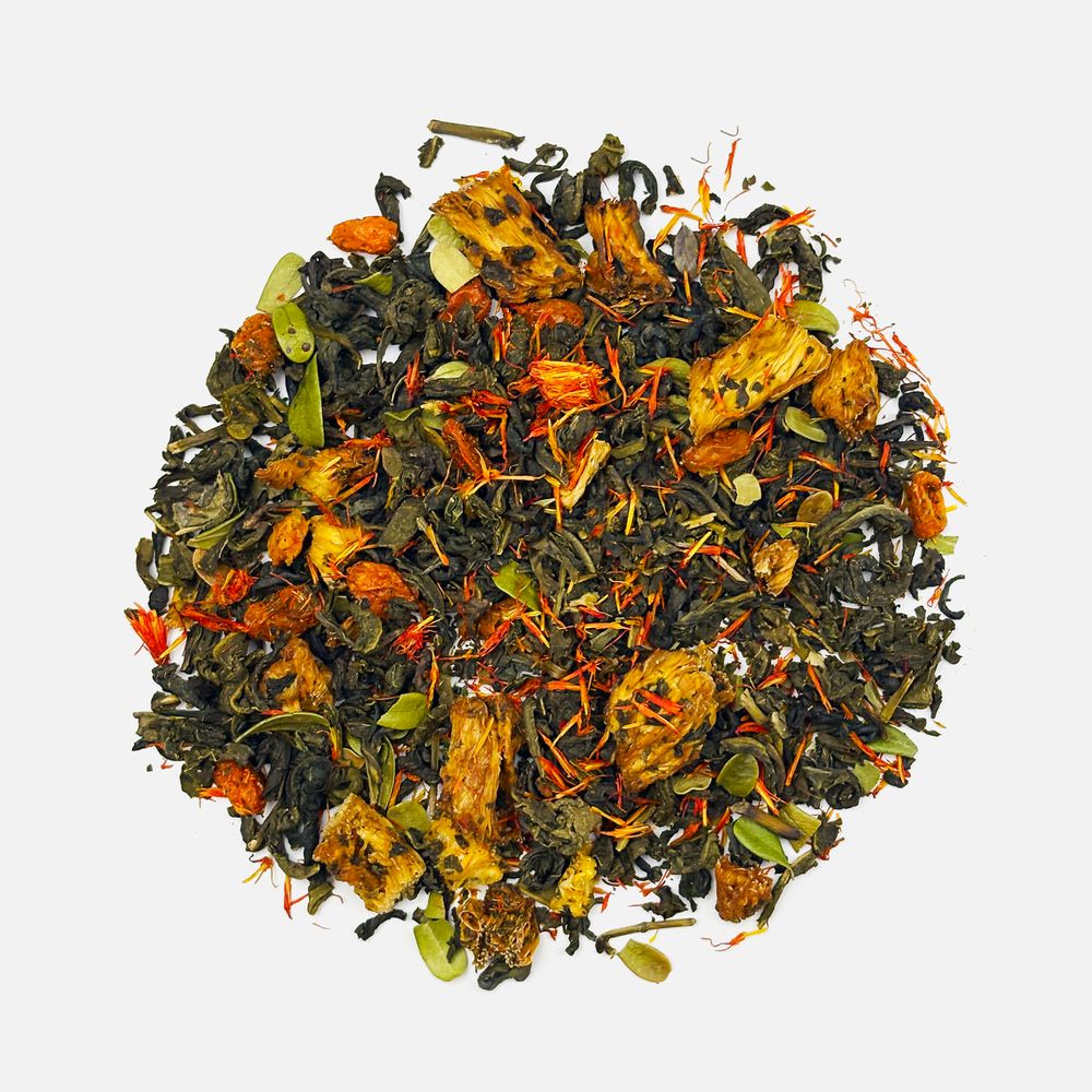 Чай «Сокочай», зеленый с соком ананаса, облепихой, толокнянкой и сафлором