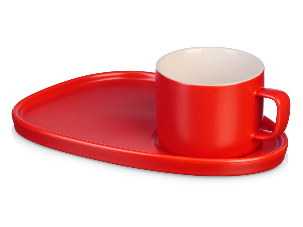 Чайная пара с необычным блюдцем — на нем хватит места не только для чашки, но и для пирожного. Удобство этой чайной пары еще и в том, что для чашки предусмотрена отдельная ниша, которая не даст ей соскользнуть. - большое блюдце необычной формы с местом для чайного пакетика или печенья - кружка белая внутри и яркая снаружи - удобная ручка - костяной фарфор