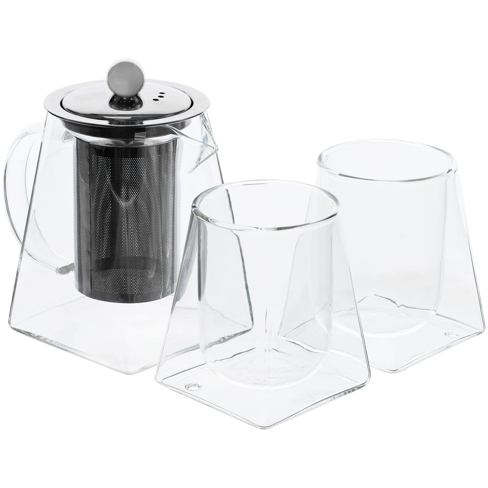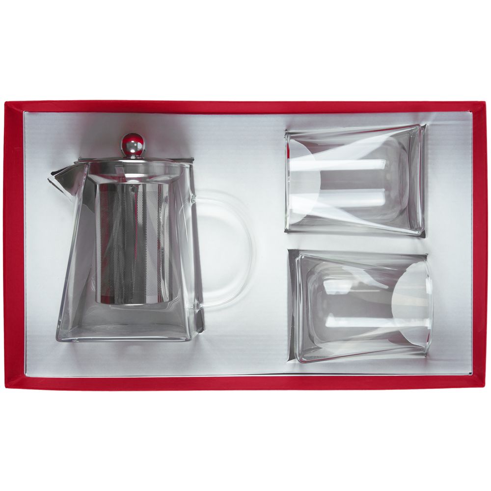 | Материал | чайник, стаканы - боросиликатное стекло; крышка и сито - нержавеющая сталь; коробка - переплетный картон, бумага Classy Covers |