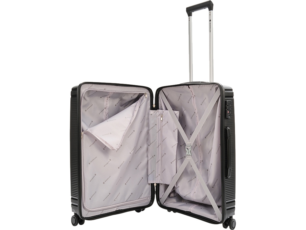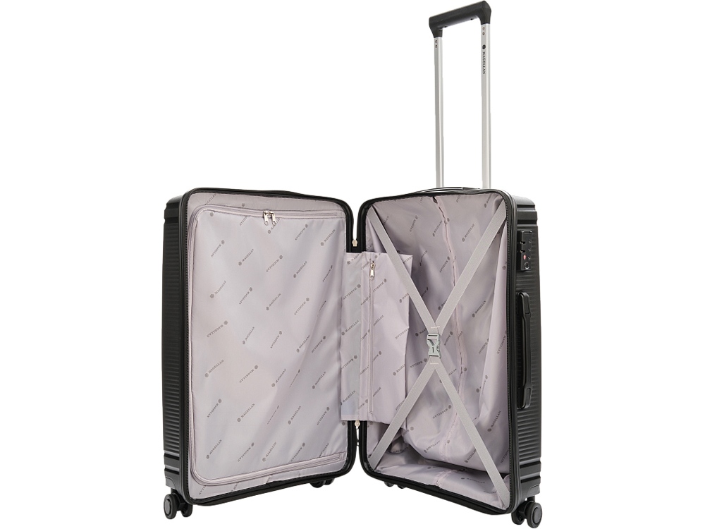 Тринидад (что в переводе с испанского значит Святая Троица) — флагманский корабль первого кругосветного плаванья под командованием Фернана Магеллана. Коллекция TRINIDAD от бренда MAGELLAN – это коллекция, микро-реберный дизайн которой вдохновлён античной архитектурой Греции, матово-глянцевая фактура с Т начертанием отсылает к названию коллекции. Чемоданы TRINIDAD выполнены из легкого и прочного полипропилена, который защитит ваши вещи от ударов и повреждений во время перевозки. Внутреннее пространство чемоданов удобно организовано и оборудовано упаковочными ремнями, позволяющими зафиксировать ваши вещи внутри. - Втяжная ручка для переноски - Двойная выдвижная телескопическая ручка - Функция увеличения объема в моделях формата ручная кладь - Микро реберный дизайн с матово-глянцевой фактурой - Интегрированная система крепления колес - Двойная четырехколесная система - Встроенный кодовый замок с функцией TSA - Тканевый разделитель на молнии - Боковой карман на застежке молнии - Брендированный тканьевый подклад из полиэстера - Перекрестные упаковочные ремни