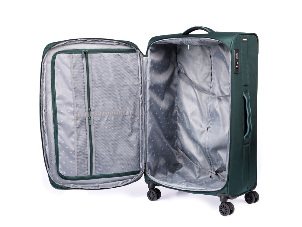 Чемодан TORBER станет незаменимым спутником во время деловой поездки, семейного отдыха или незабываемого путешествия. Серия чемоданов СЕЙД - представляет собой одну из наиболее загадочных достопримечательностей Мурманской области - Сейдозеро. Этот водоём в Ловозерских тундрах привлекает не столько живописными пейзажами, сколько тайнами. Саамы почитали Сейдозеро как священное. А поиски наследия Гипербореи на берегах и в водах этого озера до сих пор будоражат умы искателей приключений. Окунись в тайну, возьми с собой в путешествие чемодан TORBER СЕЙД. Чемодан TORBER СЕЙД - прекрасно подойдёт для поездок на любые расстояния. Его размеры составляют 48 х 26.5 х 78 см., а объем - 85 литров. Легкая регулируемая телескопическая алюминиевая ручка и система из четырёх двойных колёс, вращающихся на 360 градусов, обеспечивает мягкий ход и свободное движение во всех направлениях. Чемодан полностью раскрывается на 2 отделения, с перегородкой на молнии и ремнями для надежной фиксации вещей на месте. Использование цифрового замка системы TSA позволяет сотрудникам таможни осуществлять инспекцию багажа без повреждения чемодана. Выдвижная адресная бирка поможет быстро опознать чемодан при утере.