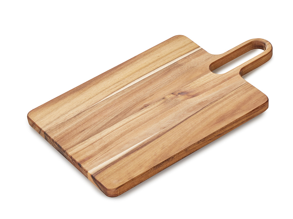 Разделочная доска Вэй выполнена из массива акации — прочного и влагостойкого материала, который устойчив к появлению царапин и деформации. Благодаря плотной структуре древесина не впитывает запахи и соки продуктов, что делает доску гигиеничной и безопасной в использовании. Благодаря удлиненной ручке доска удобно лежит в руке, а большое отверстие позволяет с легкостью повесить доску на крючок для хранения. Доска Вэй подходит для нарезки овощей, мяса, зелени, а также для подачи закусок. Компактная, практичная и стильная — она станет удобным помощником на кухне.