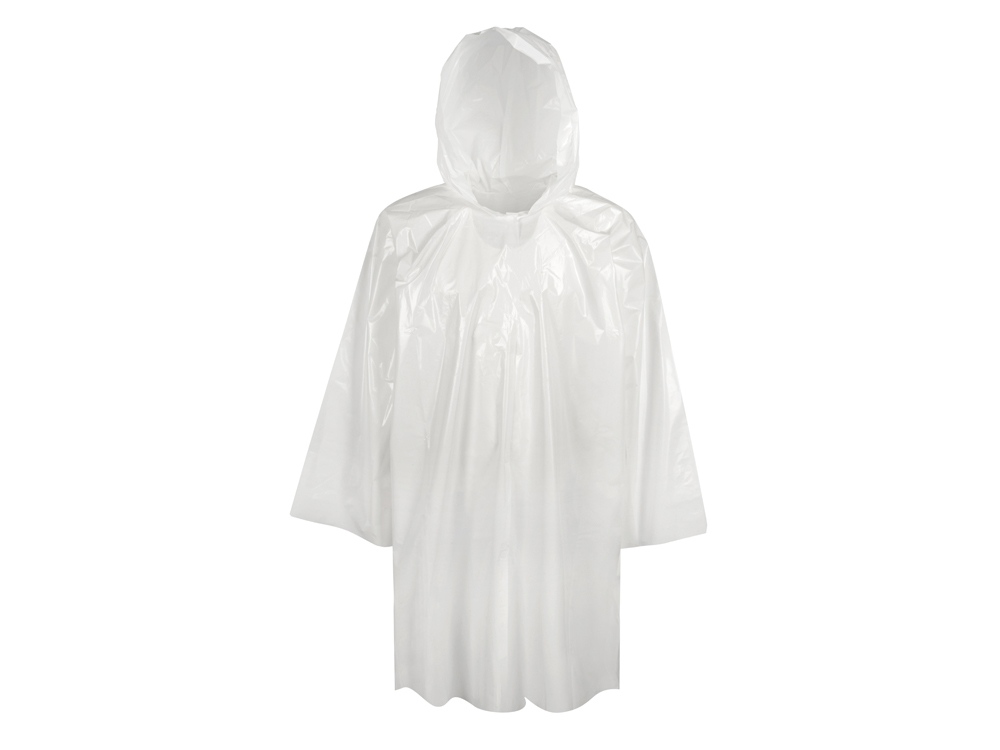 Многоразовый дождевик-плащ отлично подходит как для повседневного использования так и для масштабных мероприятий на открытом воздухе. Дождевик с длинным рукавом и капюшоном, застегивается на кнопки-липучки, выполнен из полиэтилена повышенной плотности, поставляется в прозрачном пакете с застежкой зип-лок. Дождевик единого размера.