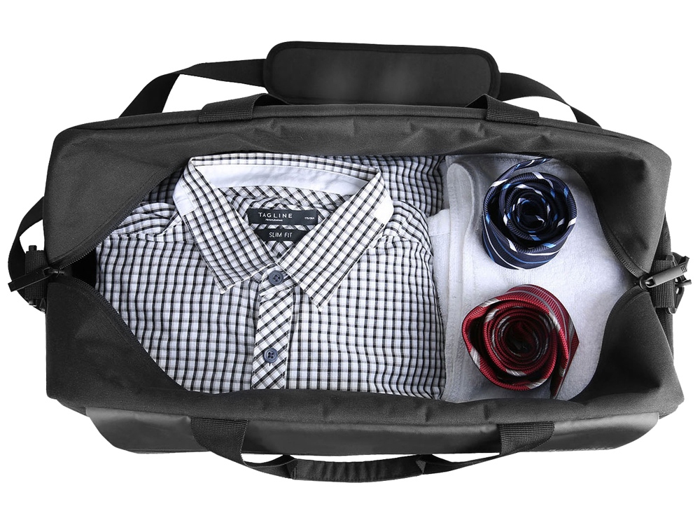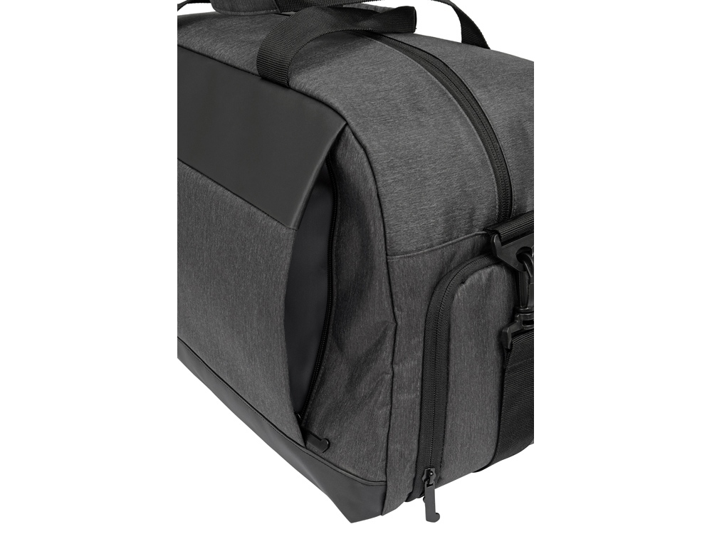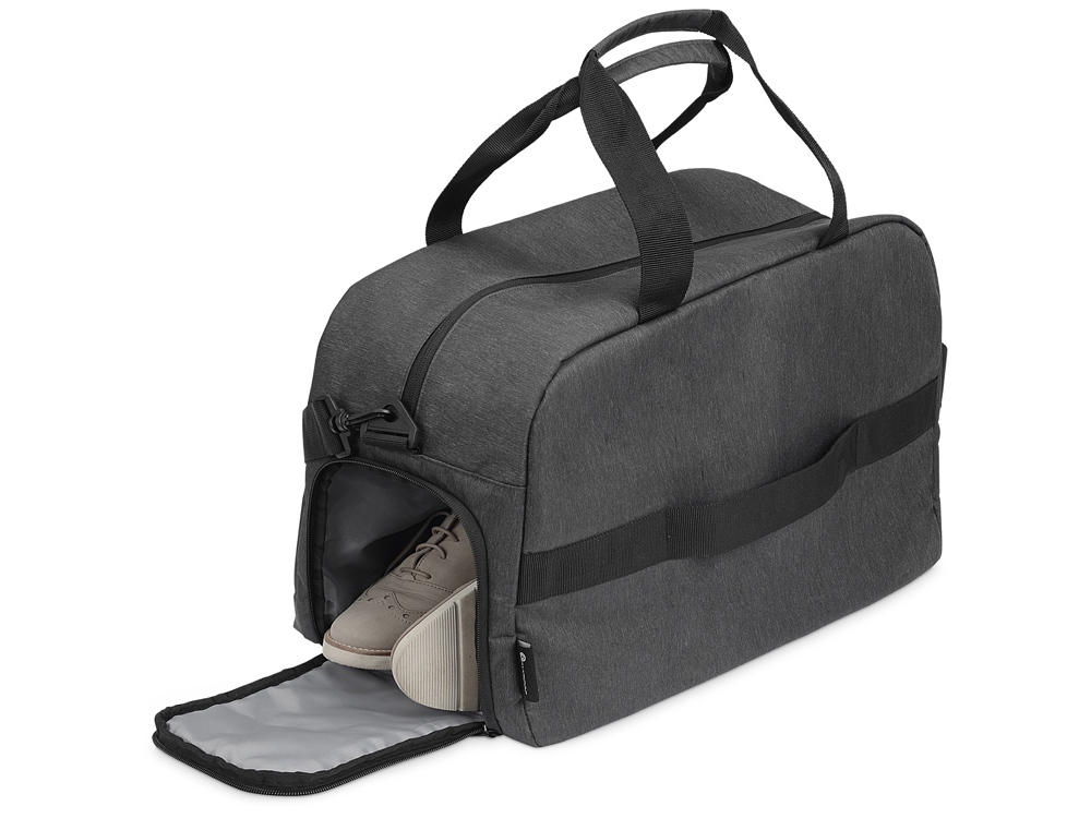 Линейка товаров District создана для людей, которые ценят удобство и комфорт в путешествиях. Коллекцию аксессуаров, сумок и рюкзаков отличают минимализм и внимание к деталям. Стильная дорожная сумка District, Voyager – незаменимый помощник в поездках. Лаконичный дизайн модели, выдержанный в темно-серых тонах, делает ее универсальной: аксессуар подойдет и мужчинам, и женщинам. Сумка изготовлена из крепкого, устойчивого к износу материала и рассчитана на длительную эксплуатацию. • Крепкие короткие ручки, удобно лежащие в ладони. • Съемный длинный ремень с регулируемой длиной и с расширяющей накладкой, уберегающей плечо от натирания. • Ремень на задней стороне сумки для надежного крепления аксессуаре на телескопической ручке чемодана на колесиках. • Два внешних боковых кармана для вещей, которые должны быть всегда под рукой. • Несколько внутренних отделений и карман на молнии для удобного размещения массы различных предметов. • Дополнительное отделение для размещения обуви отдельно от других вещей.