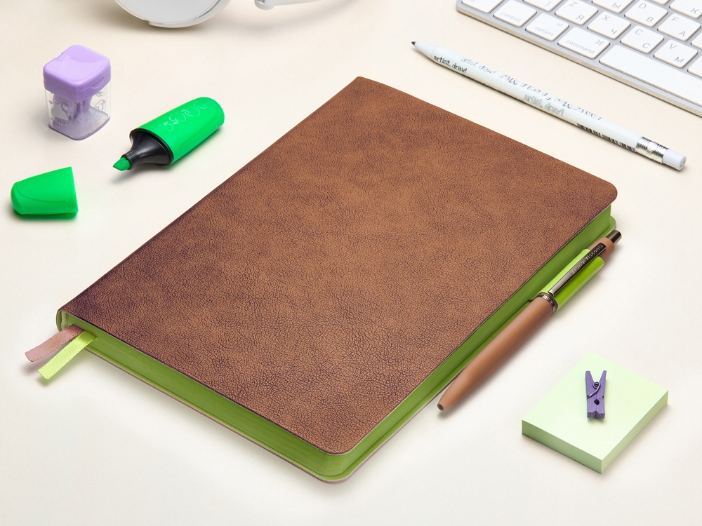 Ежедневник А5 датированный Boston 2027, коричневый с салатовым обрезом купить оптом и в розницу с нанесением логотипа в Волгограде