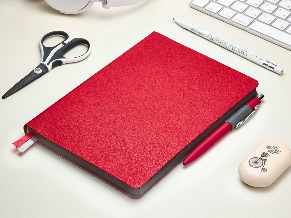 Ежедневник А5 датированный Boston 2027, красный с серым обрезом