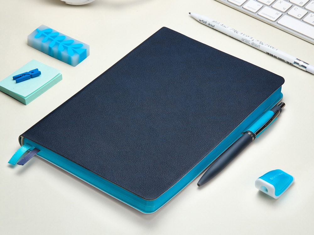 Ежедневник А5 датированный Boston 2027, темно-синий с голубым обрезом купить оптом и в розницу с нанесением логотипа в Волгограде
