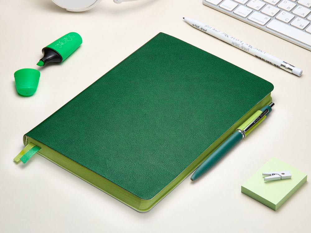 Ежедневник А5 датированный Boston 2027, зеленый с салатовым обрезом