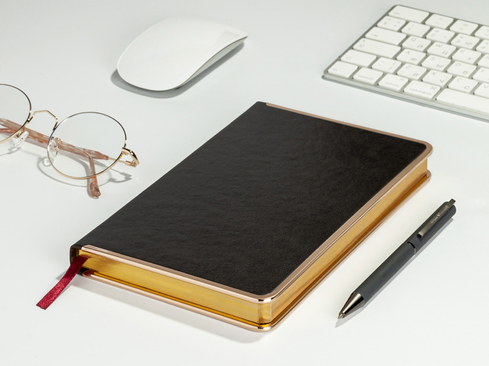 Недатированный ежедневник Chelsea от бренда Bruno Visconti - это качественный корпоративный подарок по выгодной цене, произведенный специально под персонализацию. Представлен в универсальном формате А5. Деловой аксессуар, напоминающий об эпохе расцвета Голливуда, в элегантной неповторимой манере преподносит привычные классические формы. Твердая обложка оформлена металлическим кантом по всему периметру. С ним хорошо сочетается металлизированный обрез. В ежедневнике Chelsea есть полезная справочная информация и телефонная книга, а также 272 страницы для записи идей, мыслей и составления рабочих планов. Есть закладка - тесьма из шелка, она интегрирована в обложку и может использоваться как хлястик. Для изготовления страниц используется качественный бежевый офсет повышенной плотности (70 г/кв м), которая производится в Японии и подходит для всех видов чернил. Бордовое ляссе, совпадающее по цвету с капталом, служит для удобного перехода к текущей дате. Все ежедневники от бренда Bruno Visconti можно персонализировать с помощью тиснения обложки - золотой или серебрянной фольгой. Наши ежедневники помогут быть успешным и эффективным в карьере и повседневной жизни!