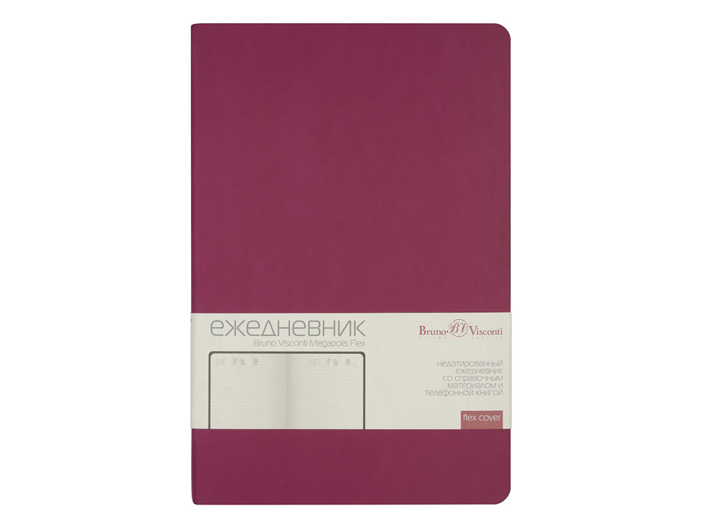 Недатированный ежедневник Megapolis Flex от бренда Bruno Visconti - это качественный корпоративный подарок по выгодной цене, произведенный специально под персонализацию. Представлен в универсальном формате А5 и состоит из 272 страниц. Элегантная закругленная flex обложка из гладкого кожзама имеет гибкую конструкцию и приятна на ощупь. А интегральный переплет позволяет сэкономить место в деловой сумке или портфеле – ежедневник можно просто свернуть в трубку или согнуть пополам. В ежедневнике Megapolis Flex есть полезная справочная информация и телефонная книга, а также страницы для записи идей, мыслей и составления рабочих планов. Для изготовления страниц используется качественный бежевый офсет повышенной плотности (70 г/кв м). Блок не привязан к конкретным датам – они указываются в выделенном поле вверху страницы. Тонированная бумага не дает глазам утомиться даже при длительной работе. Все ежедневники от бренда Bruno Visconti можно персонализировать с помощью тиснения обложки - золотой или серебряной фольгой. Наши ежедневники помогут быть успешным и эффективным в карьере и повседневной жизни!