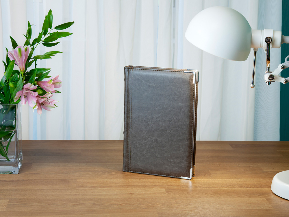 Полудатированный ежедневник Boss от бренда Bruno Visconti - это качественный корпоративный подарок по выгодной цене, произведенный специально под персонализацию. Представлен в универсальном формате А5 и состоит из 416 страниц. Классический деловой ежедневник линии Boss – образец элегантности. Гладкую тонкую фактуру экокожи подчеркивает декоративная строчка по контуру и металлические закругленные уголки золотистого цвета. В ежедневнике есть полезная справочная информация и телефонная книга, а также страницы для записи идей, мыслей и составления рабочих планов. Есть перфорация (нижние уголки отрывные). Для изготовления страниц используется качественный бежевый офсет повышенной плотности (80 г/кв м), которая производится японской фирмой Daiwa и подходит для всех видов чернил. Ежедневник можно персонализировать с помощью тиснения обложки - золотой или серебряной фольгой. Наши ежедневники помогут быть успешным и эффективным в карьере и повседневной жизни!