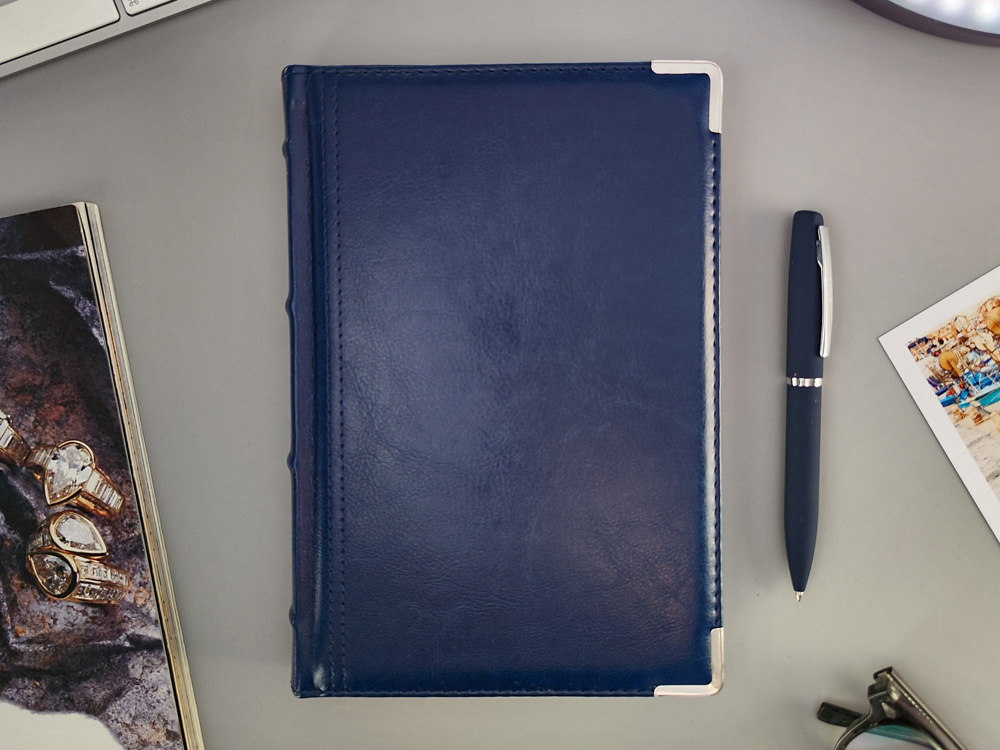 Полудатированный ежедневник Boss от бренда Bruno Visconti - это качественный корпоративный подарок по выгодной цене, произведенный специально под персонализацию. Представлен в универсальном формате А5 и состоит из 416 страниц. Классический деловой ежедневник линии Boss – образец элегантности. Гладкую тонкую фактуру экокожи подчеркивает декоративная строчка по контуру и металлические закругленные уголки золотистого цвета. В ежедневнике есть полезная справочная информация и телефонная книга, а также страницы для записи идей, мыслей и составления рабочих планов. Есть перфорация (нижние уголки отрывные). Для изготовления страниц используется качественный бежевый офсет повышенной плотности (80 г/кв м), которая производится японской фирмой Daiwa и подходит для всех видов чернил. Ежедневник можно персонализировать с помощью тиснения обложки - золотой или серебряной фольгой. Наши ежедневники помогут быть успешным и эффективным в карьере и повседневной жизни!
