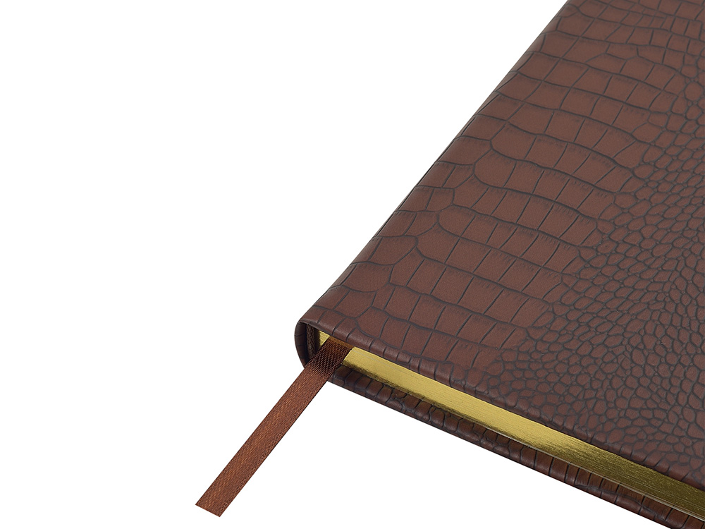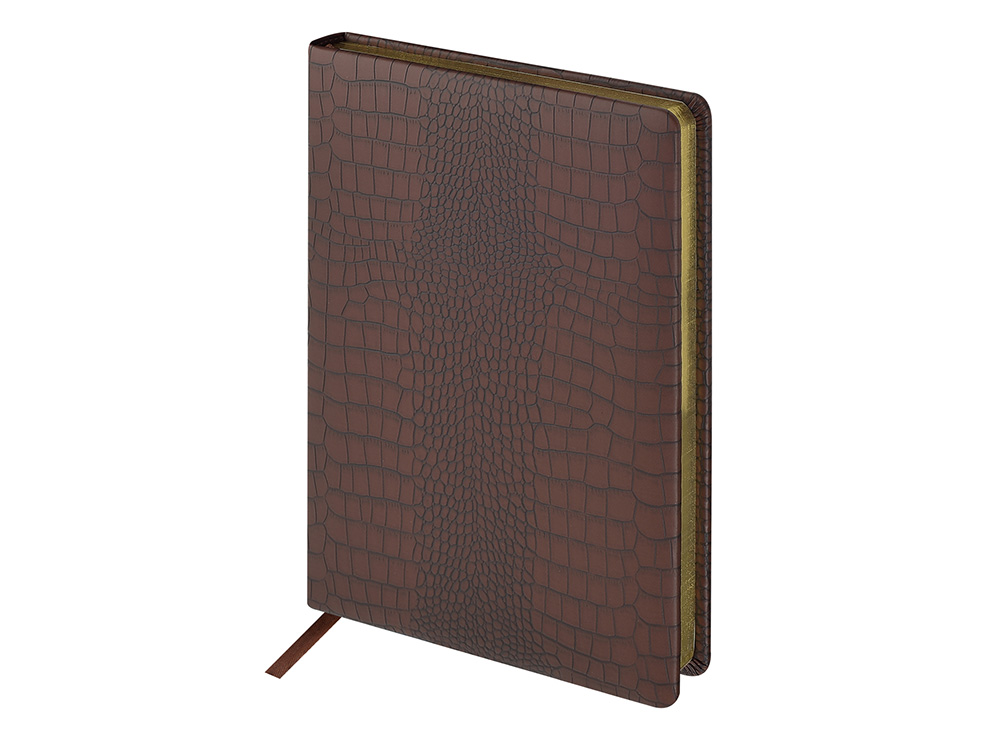 Недатированный ежедневник Amazonia ТМ Bruno Visconti формата A5 - это воплощение классического стиля и респектабельности. Обложка, имитирующая кожу рептилии, золотой обрез и закладка-ляссе в тон подчеркивают его премиальный статус. Бумажный блок, закрепленный книжным переплетом, выполнен из бежевой офсетной бумаги плотностью 70 г/ кв м. Внутри блока есть страница для персональных данных, справочная информация на 13 страницах. Блок для записей имеет линовку с указанием временных интервалов в один час.