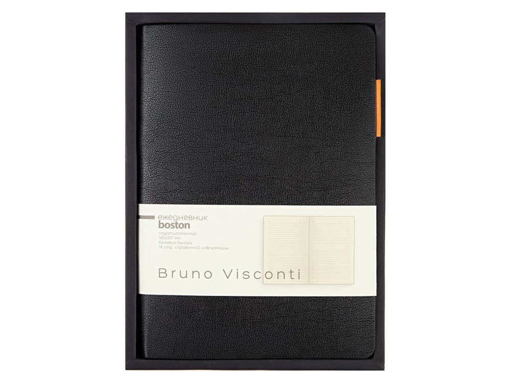 Ежедневник недатированный А5 Boston, черный (оранжевый обрез)