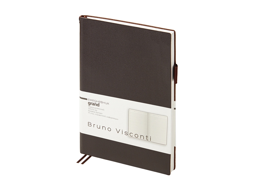 Мягкая, гибкая обложка с необычной фактурой, приятной на ощупь, петля под ручку, двойное ляссе, стандартный формат А5 — все это ежедневник Grand. А благодаря оригинальному способу фиксации ляссе на корешке ежедневник получил новое звучание. Такая фишка придется по вкусу всем, кто придает большое значение деталям. Недатированный блок изготовлен из бежевой бумаги плотностью 80 г/кв.м. Ежедневник имеет справочную информацию на 14 страницах.
