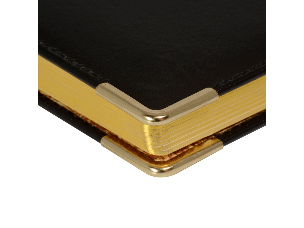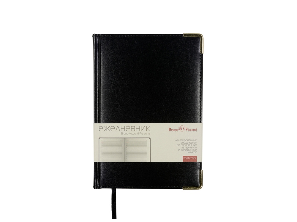 Ежедневник Persona – идеальный баланс между практичностью и статусностью. Великолепный переплетный материал прошит тонкой шелковой нитью в цвет обложки. Благородство в облик ежедневника добавляют металлические уголки и золотой обрез. На контрасте с темным цветом обложки, блок состоит из листов бежевого цвета плотностью 70 г/кв.м. Раздел планирования дополнен справочной информацией на 14 страницах и телефонной книгой на 19 страницах. Вечная и никогда не стареющая классика!