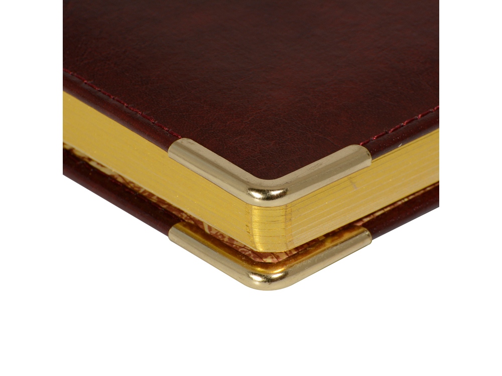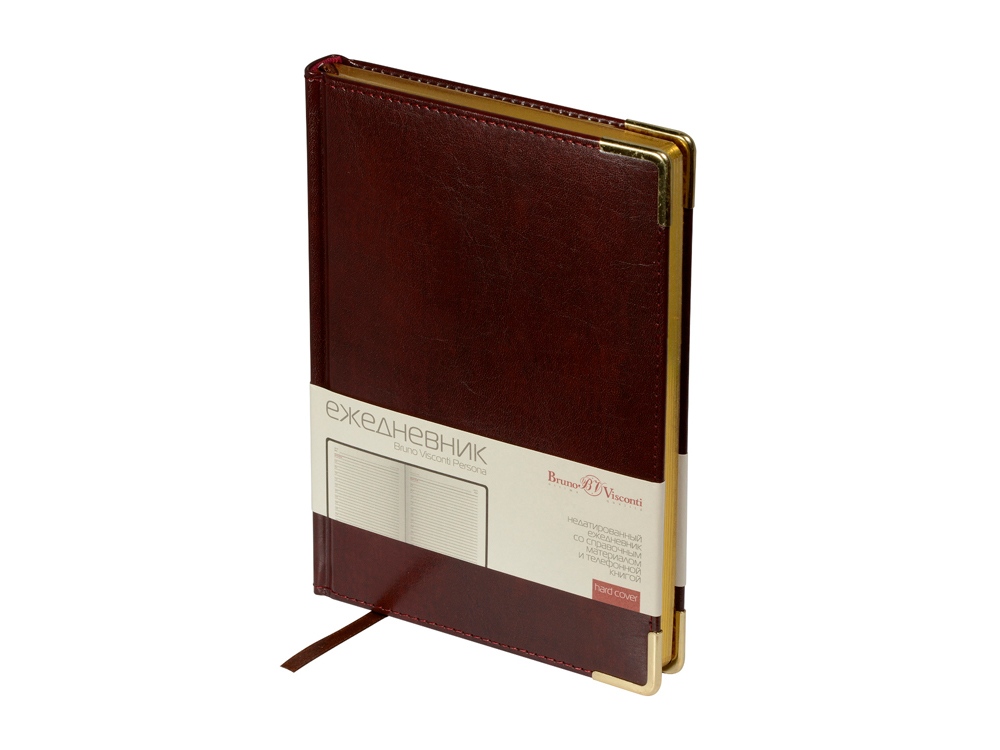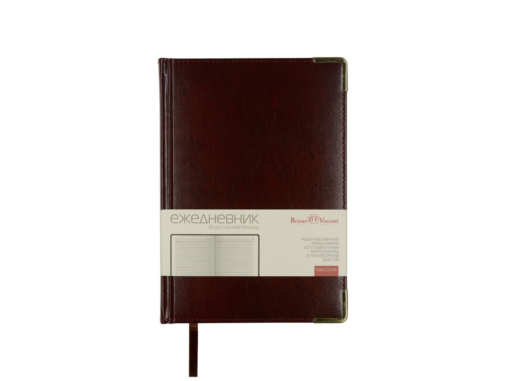 Ежедневник Persona – идеальный баланс между практичностью и статусностью. Великолепный переплетный материал прошит тонкой шелковой нитью в цвет обложки. Благородство в облик ежедневника добавляют металлические уголки и золотой обрез. На контрасте с темным цветом обложки, блок состоит из листов бежевого цвета плотностью 70 г/кв.м. Раздел планирования дополнен справочной информацией на 14 страницах и телефонной книгой на 19 страницах. Вечная и никогда не стареющая классика!