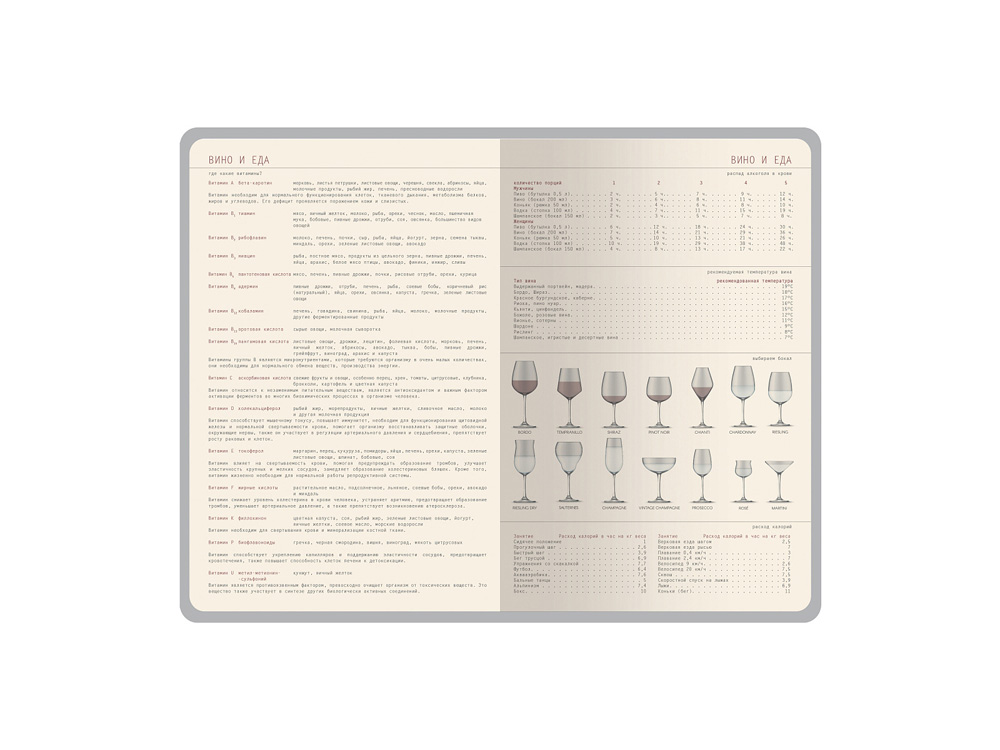 Гибкая мягкая обложка с эффектом муара, тактильно приятная с рифленой фактурой – главное украшение недатированного ежедневника Soho ТМ Bruno Visconti. Ляссе в цвет обложки как легкое дополнение к строгому, но элегантному образу. Никаких дополнительных деталей, а сколько благородства. Ежедневник формата А5 имеет внутренний блок из 272 страниц. Блок изготовлен из бежевой бумаги плотностью 70 г/м2 и содержит: Покрытие soft touch придает обложке мягкость и создает приятные тактильные ощущения в работе с ежедневником. • раздел для планирования с линовкой и указанием времени с интервалом в один час; • страница для персональных данных; • страницы для планирования рабочих и личных дел по месяцам; • 10 страниц оригинальной справочной информации (вино и еда, мода, драгоценности, как выбирать подарок, методы борьбы со стрессом).
