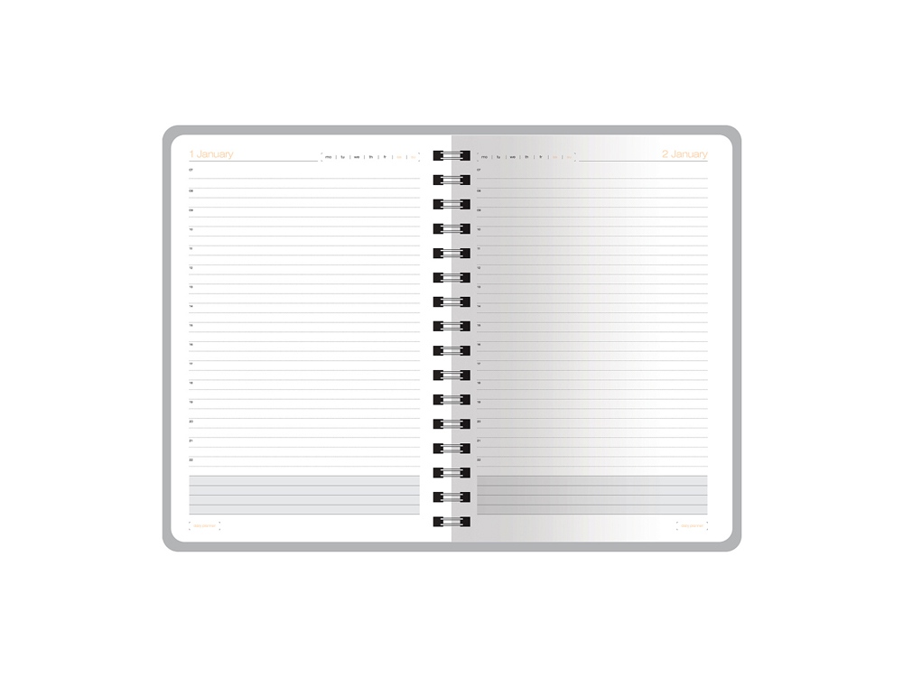 Полудатированный деловой ежедневник ORBIT формата А5 от Bruno Visconti – идеальное решение для динамичных деловых людей, которым важны комфорт, мобильность и качество. Гибкая (flex) обложка из фактурной высококачественной экокожи, скругленный угол обложки и блока, полускрытый гребень, позволяющий держать ежедневник открытым на столе и работать с комфортом, делая записи, серебряный обрез - все это визитная карточка ежедневника ORBIT от Bruno Visconti. Внутренний блок ежедневника - 416 страниц. Он изготовлен из высококачественной белой бумаги, плотностью 70 грамм. Раздел для планирования рабочего времени имеет линовку серого цвета с интервалом времени в один час. Дополнительно ежедневник содержит справочную информацию на 21 странице и телефонную книгу на 26 страницах.