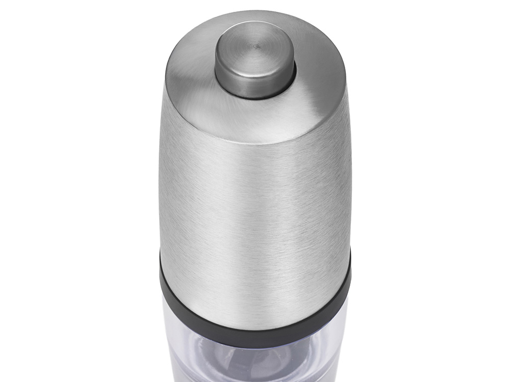 Электрическая мельница для специй Origanum Современная и удобная электрическая мельница для соли, перца и других специй. Работает от 4 батареек AAA (не входят в комплект) — одним нажатием измельчает специи до нужной степени помола. - Корпус из нержавеющей стали — прочный и стильный - Керамические жернова — долговечность и чистый вкус - Емкость из ударопрочного прозрачного пластика — удобно контролировать остаток - Объём: 20 г — компактный и вместительный формат для ежедневного использования Идеальный аксессуар для кухни и стильный подарок для тех, кто ценит вкус и эстетику.