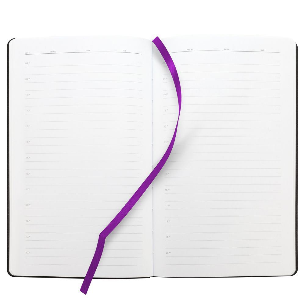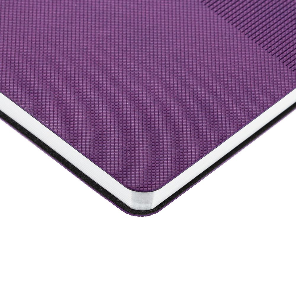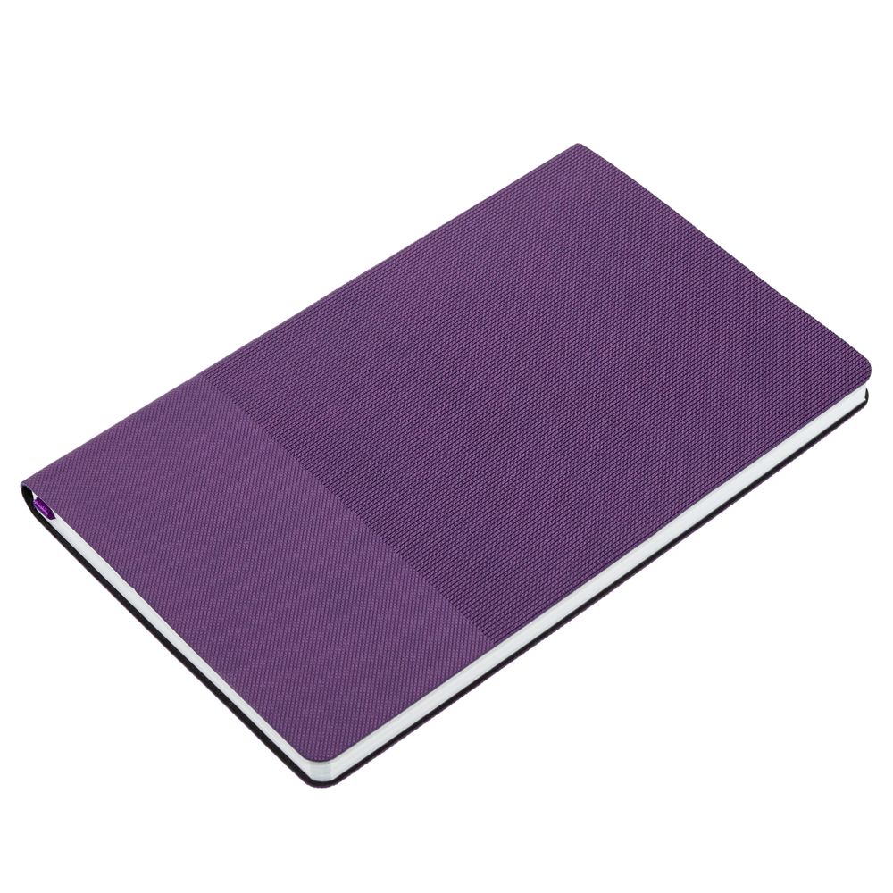 Ежедневник с гибкой обложкой, выполнен из материала Canyon, фиолетовый UU, дополнен ляссе в цвет обложки. Блинтовое тиснение на обложке создает эффект вязаного полотна.