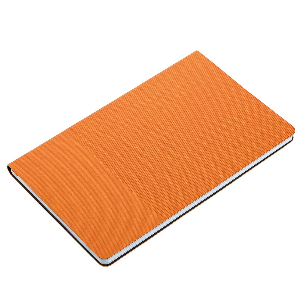 Ежедневник с гибкой обложкой, выполнен из материала Canyon, оранжевый ОО, дополнен ляссе в цвет обложки. Блинтовое тиснение на обложке создает эффект вязаного полотна.
