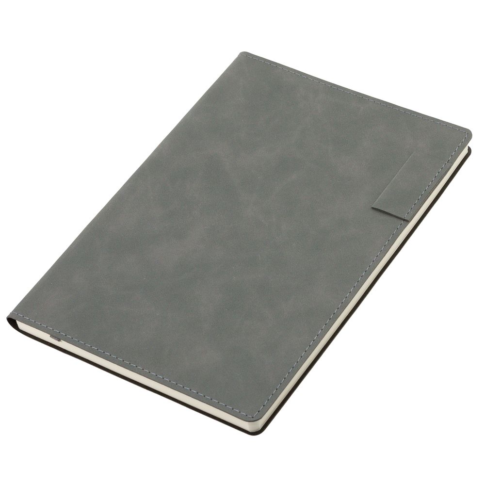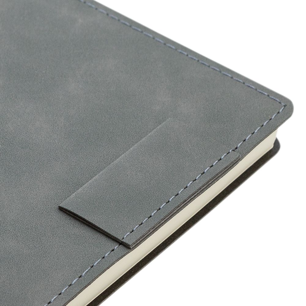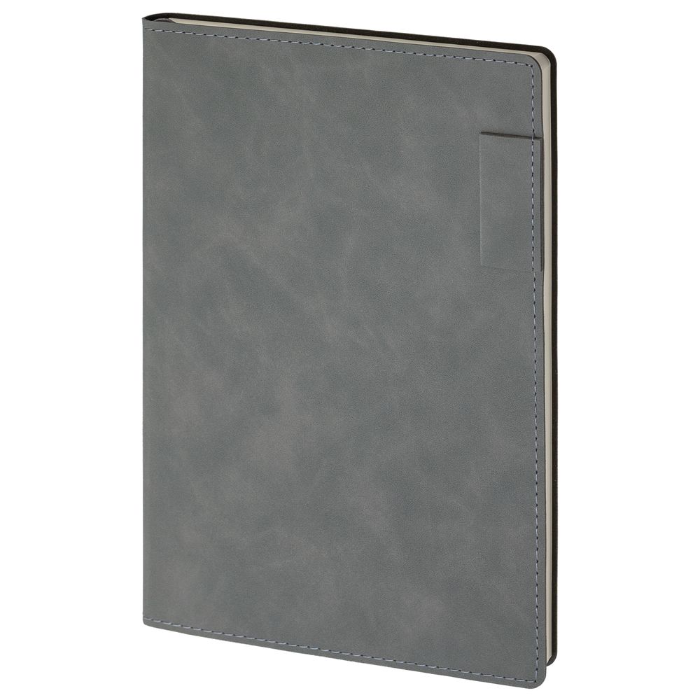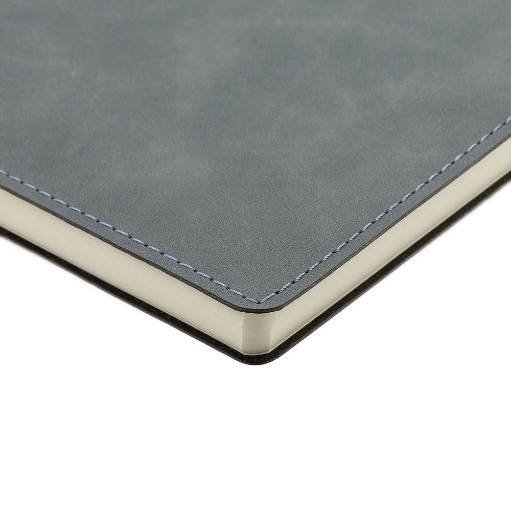 Ежедневник  17х24 см, с гибкой обложкой, выполнен из материала Nubuck Touch, темно-серый ЕЕ, дополнен петлей-лейблом для ручки и двойным ляссе в цвет материала.