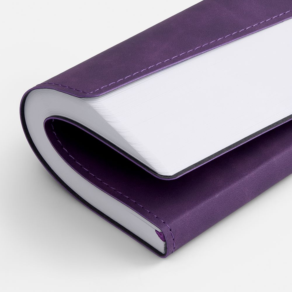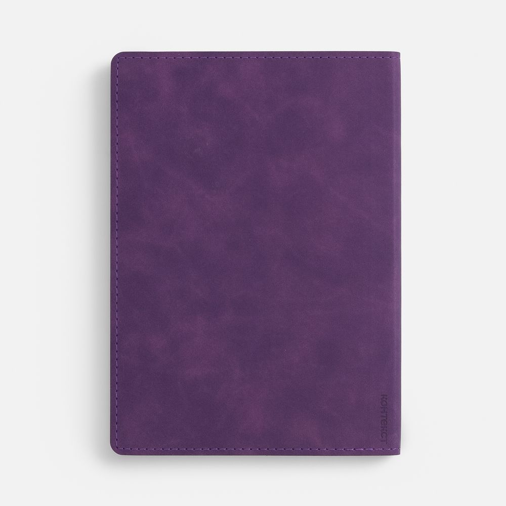 Ежедневник в клетку, с гибкой обложкой, выполнен из материала Nubuck Touch, фиолетовый UU, дополнен ляссе фиолетового цвета.