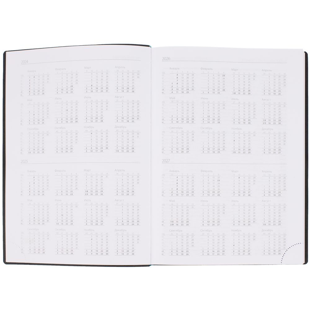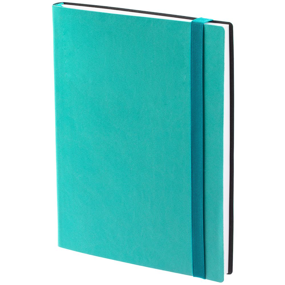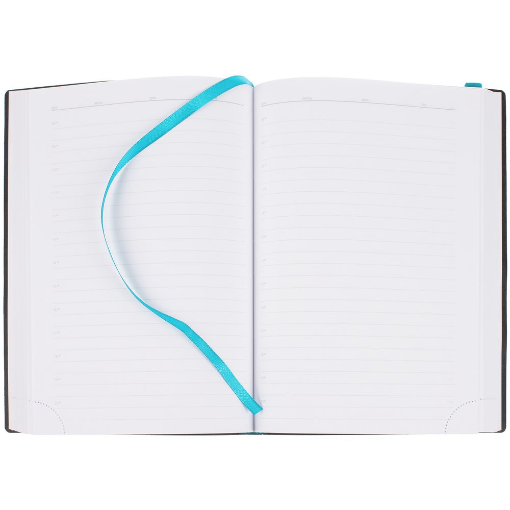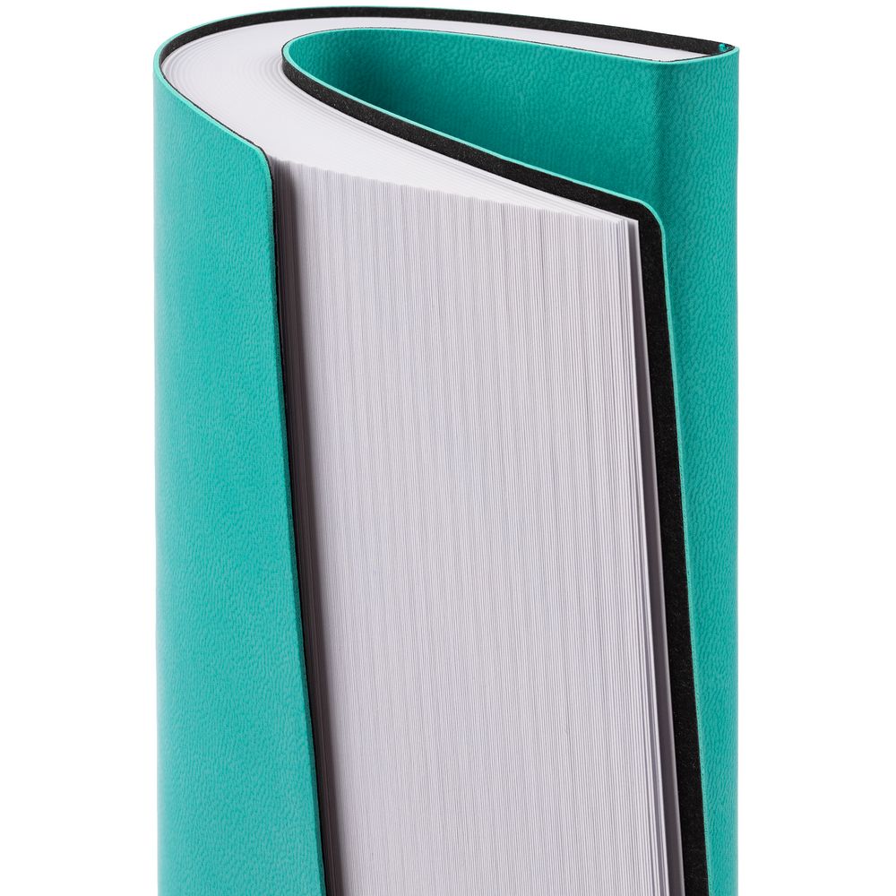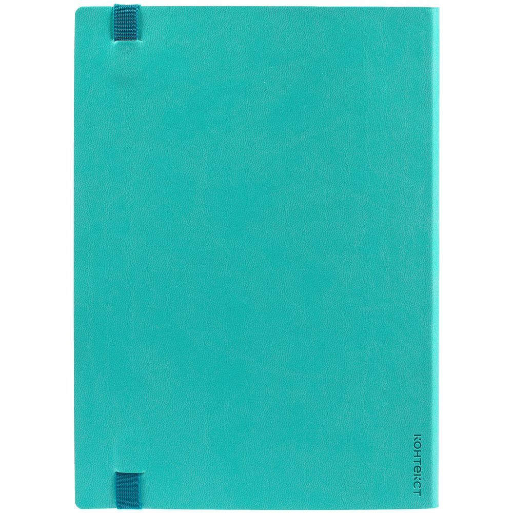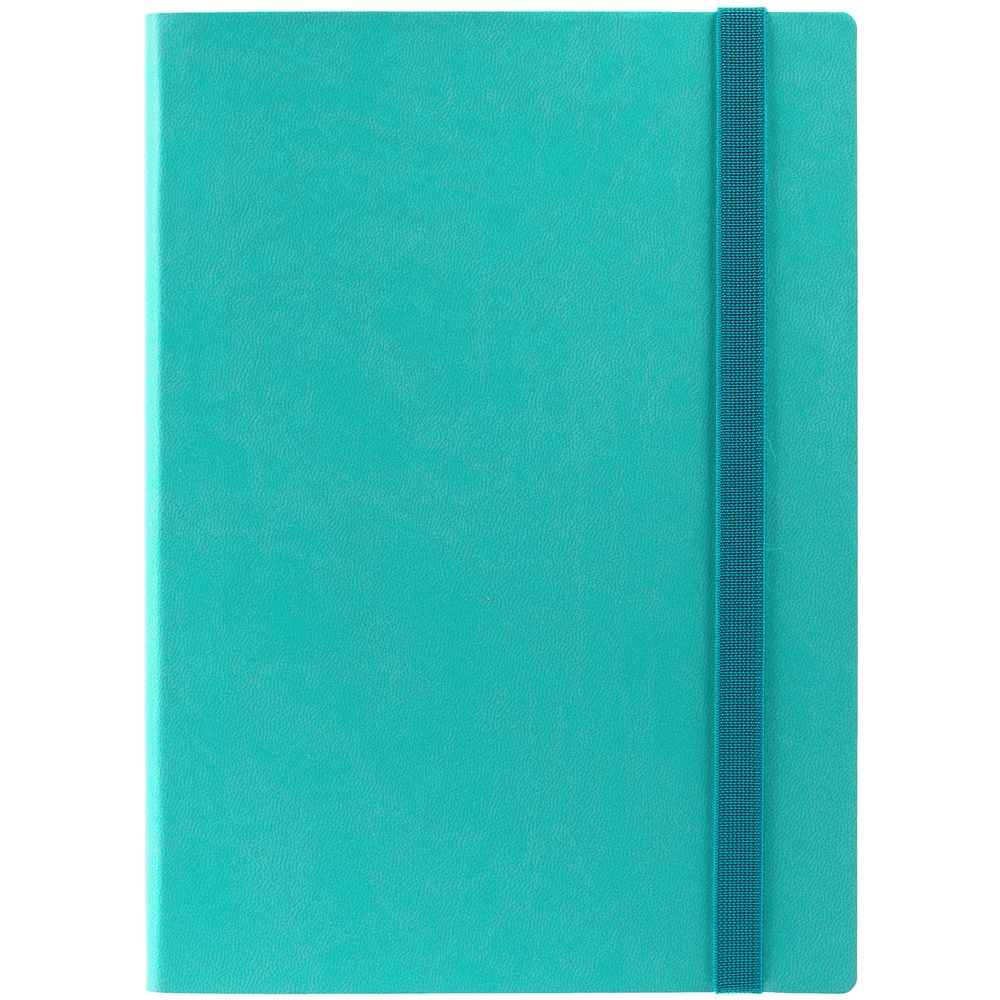 Ежедневник с гибкой обложкой выполнен из материала Latte, морская волна II, и дополнен резинкой шириной 1 см, капталом и ляссе в цвет обложки.