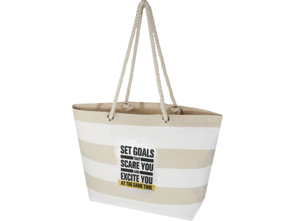 Эко-сумка Florida, изготовленная из 100% переработанного хлопка, сертифицированного согласно GRS, — это идеальная сумка для переноски всего необходимого для дня на пляже или повседневной прогулки. Хлопок плотностью 270 г/м² делает эту сумку прочной и долговечной, а веревочные ручки позволяют переносить тяжелые предметы в основном отделении. Длина ручек: 45 см. Выдерживает вес до 10 кг. Объем: 18 литр. GRS certified recycled cotton, 270 g/m2.