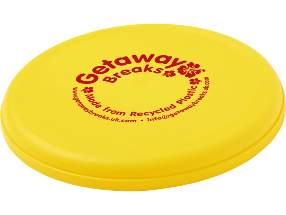 Фрисби, изготовленное из 100% переработанной пластмассы, сочетает в себе забавную идею для рекламы и экологичность. Сделано в Соединенном Королевстве. Отвечает стандарту EN72.
