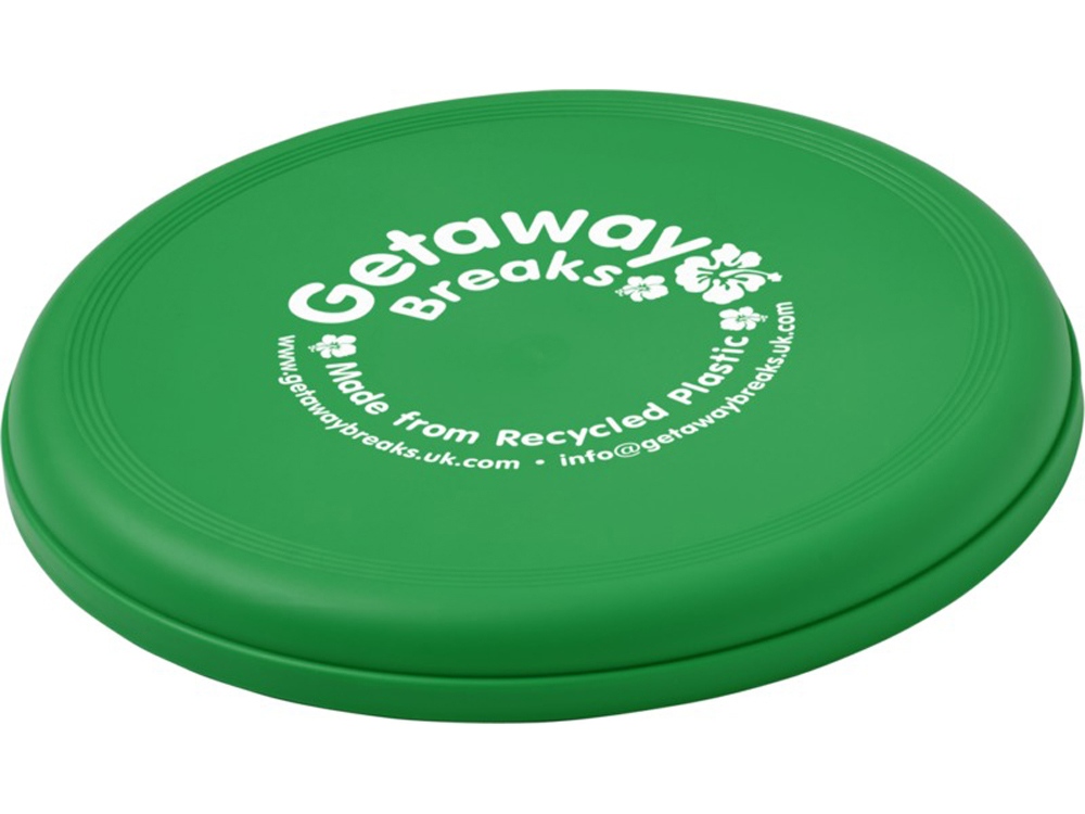 Фрисби, изготовленное из 100% переработанной пластмассы, сочетает в себе забавную идею для рекламы и экологичность. Сделано в Соединенном Королевстве. Отвечает стандарту EN72.