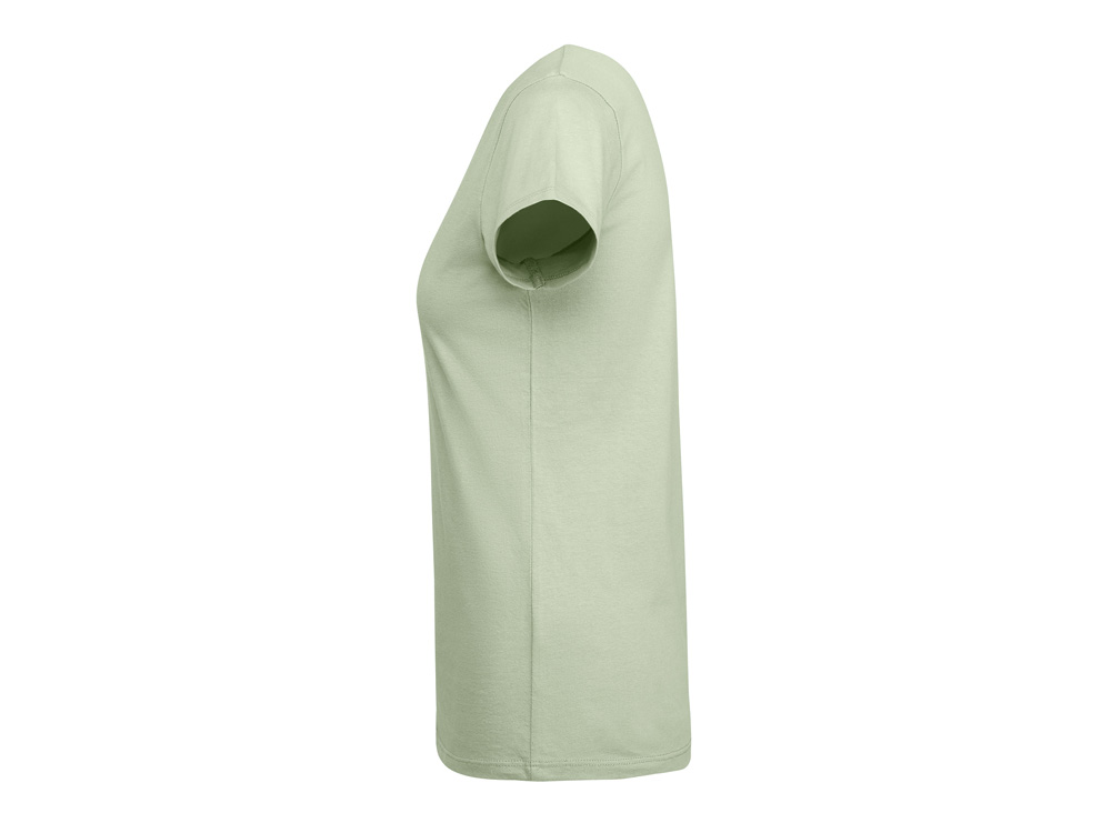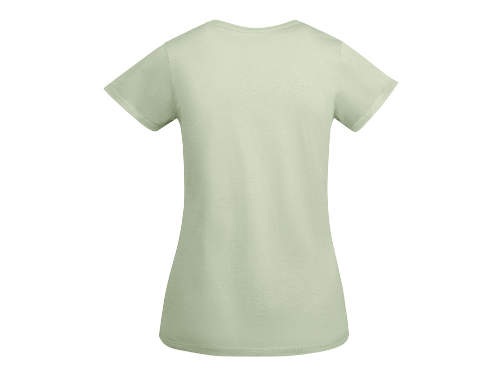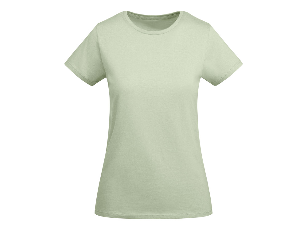 Облегающая женская футболка с коротким рукавом из органического хлопка, сертифицированного OCS. Горловина из риба 1x1. Усиленные закрытые швы по воротнику. Боковые швы.