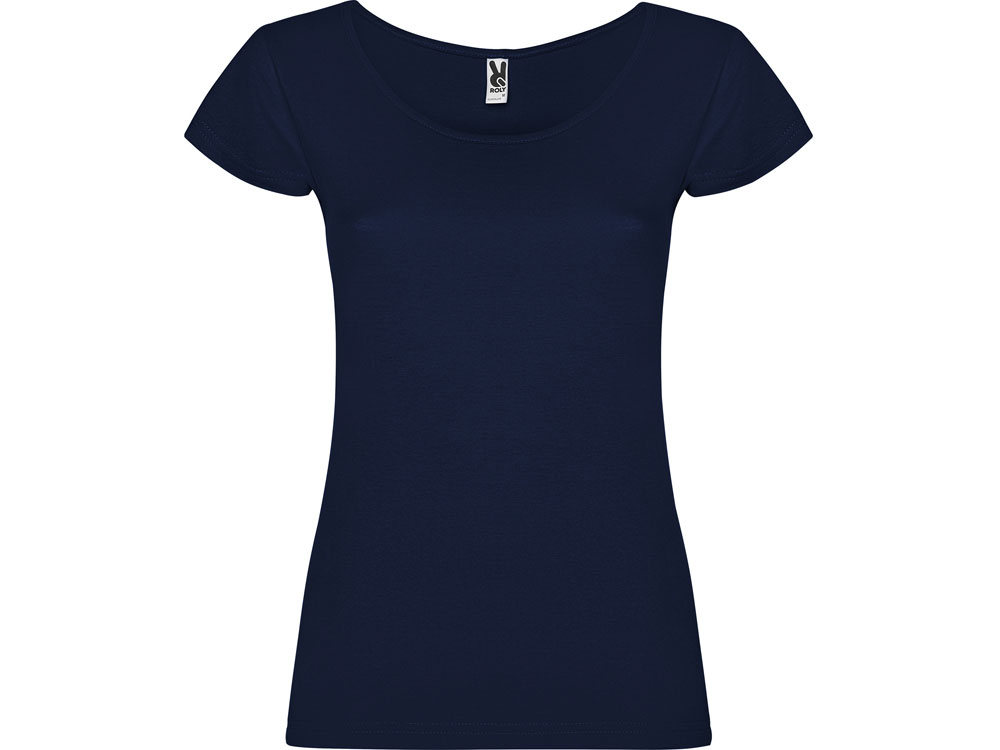 Прилегающая женская футболка с глубоким вырезом, обработанным рибом.
