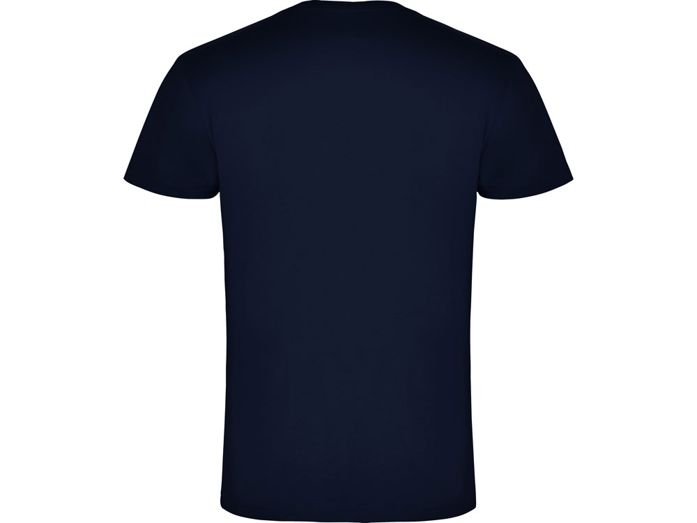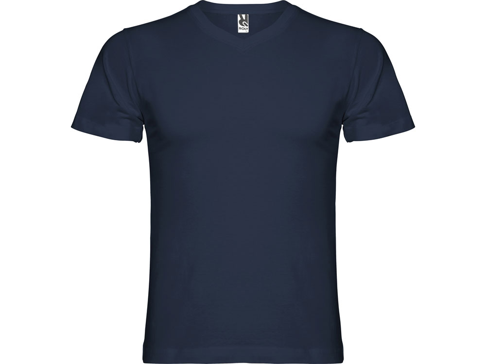 Мужская футболка без боковых швов с коротким рукавом и V-образным вырезом горловины, отделанном рибом 1х1. Горловина и плечевые швы дополнительно укреплены тесьмой.