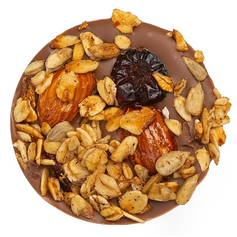 | Состав | шоколад белый (28%), молочный (34%), темный (56%), овсяные хлопья, миндальный орех, вяленая клюква, семечки подсолнечника |