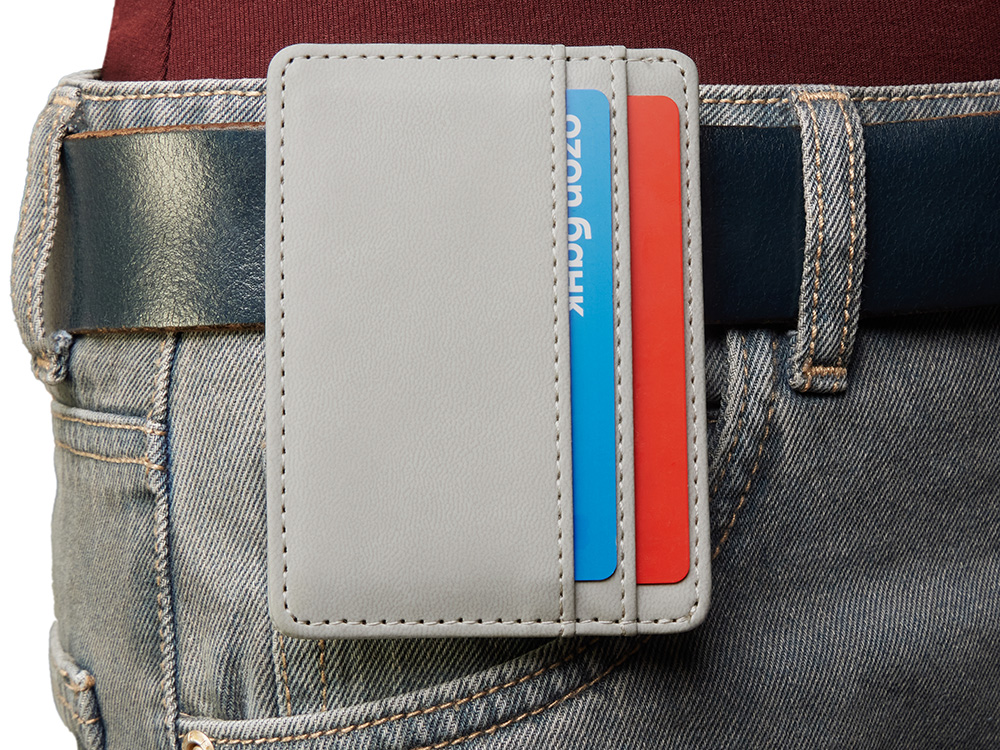 Картхолдер — стильное и практичное решение для деловых людей. В отличие от классических кошельков и портмоне он занимает совсем немного места и с лёгкостью поместится в карман. Данная модель благодаря зажиму на обороте также удобно цепляется за ремень джинс или на ланъярд. Картхолдер вмещает две карты и имеет отделение для купюр. Чтобы ещё больше порадовать клиентов, картхолдер можно вручить не пустым, а вложив в него что-нибудь полезное, например, скидочную карту или свою визитку, чтобы ваши контакты всегда были под рукой. Строгий и лаконичный дизайн Функциональный бизнес-подарок