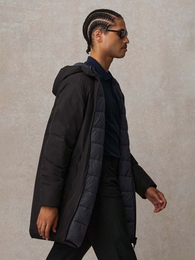 Двусторонняя утепленная парка с капюшоном. Одна сторона гладкая с водоотталкивающим покрытием, другая — стеганая. Стильная, удобная и функциональная, эта парка станет идеальным решением как для подарка, так и для повседневного использования.